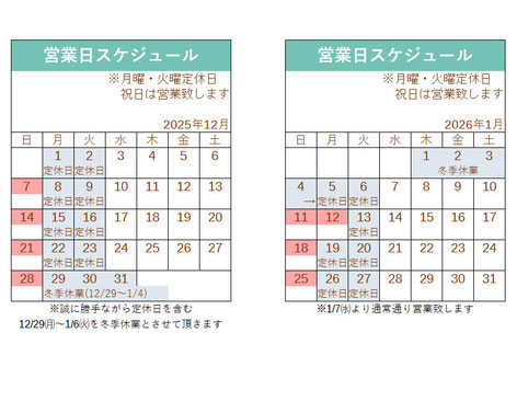 定休日:平日の月曜・火曜日(祝日は営業致します)